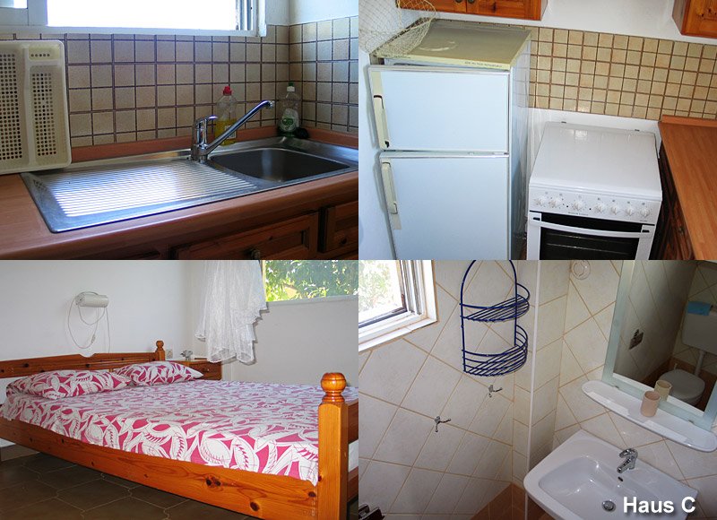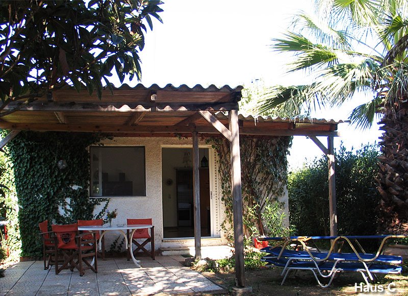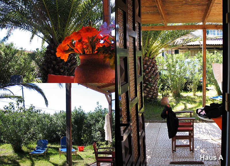Die Bungalows wurden 1989 erbaut und sind hervorragend eingerichtet. Bungalow A und B (letzterer ist die ganze Saison vom Eigentümer belegt) sowie Bungalow C und D sind zusammenhängend. Jedes Haus verfügt jedoch über einen seperaten Eingang und Garten und die Veranden liegen in zwei verschiedenen Himmelsrichtungen.