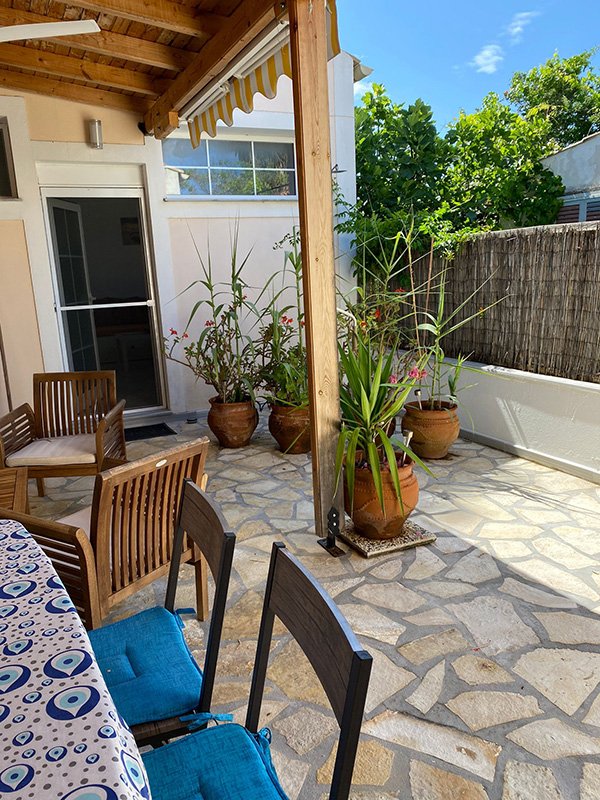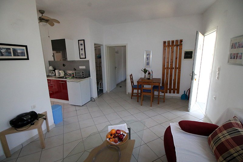 Das moderne Appartement gehört zu einer kleinen privaten Anlage mit insgesamt zwei Ferienwohnungen (Villa Leon/Villa Timo) für jeweils vier Personen und einem Appartement (Villa Mythos) für zwei bis maximal vier Personen. Bei Komplettbelegung ist der Zugang zum gemütlichen Atrium (zur Villa Mythos gehörend) für alle drei Parteien möglich, ansonsten sind diese Zugangstüren für die anderen beiden Parteien versperrt.